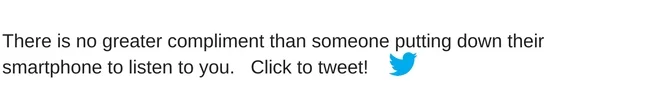 Simple, I know, but I had to say it. Imagine you walk into a room wanting to speak to someone and they say “ Sure, wait a sec”, and they put down or silence their phone. How amazing would that make you feel? These days, there is probably no greater compliment. Highly recommended for meetings and presentations as well.