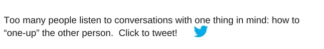 I use the word Listen and Connect almost interchangeably. The best listeners look for connections in their conversations with others and so should you. They may share that they’ve had similar experiences. However, too many people listen to conversations with one thing in mind: how to “one-up” the other person, with “I’ve done more” or “I’ve done it better” as their motivation. Guess who you don’t want to hang out with anymore.